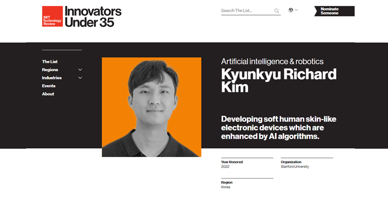 | Nov 14, 2022 | I was selected as one of the MIT Technology Review’s MIT Innovators Under 35, Korea |
